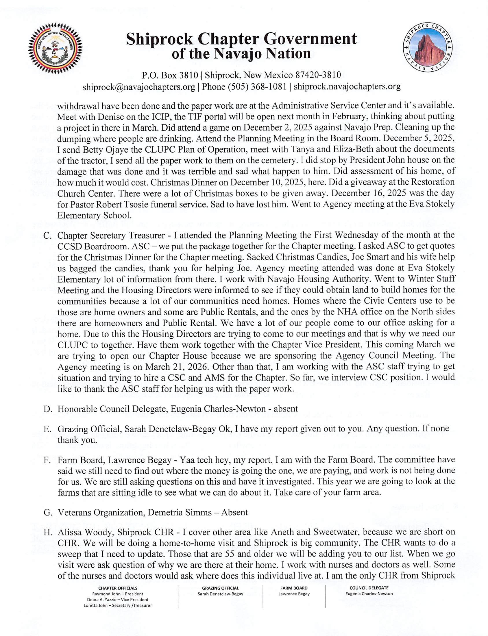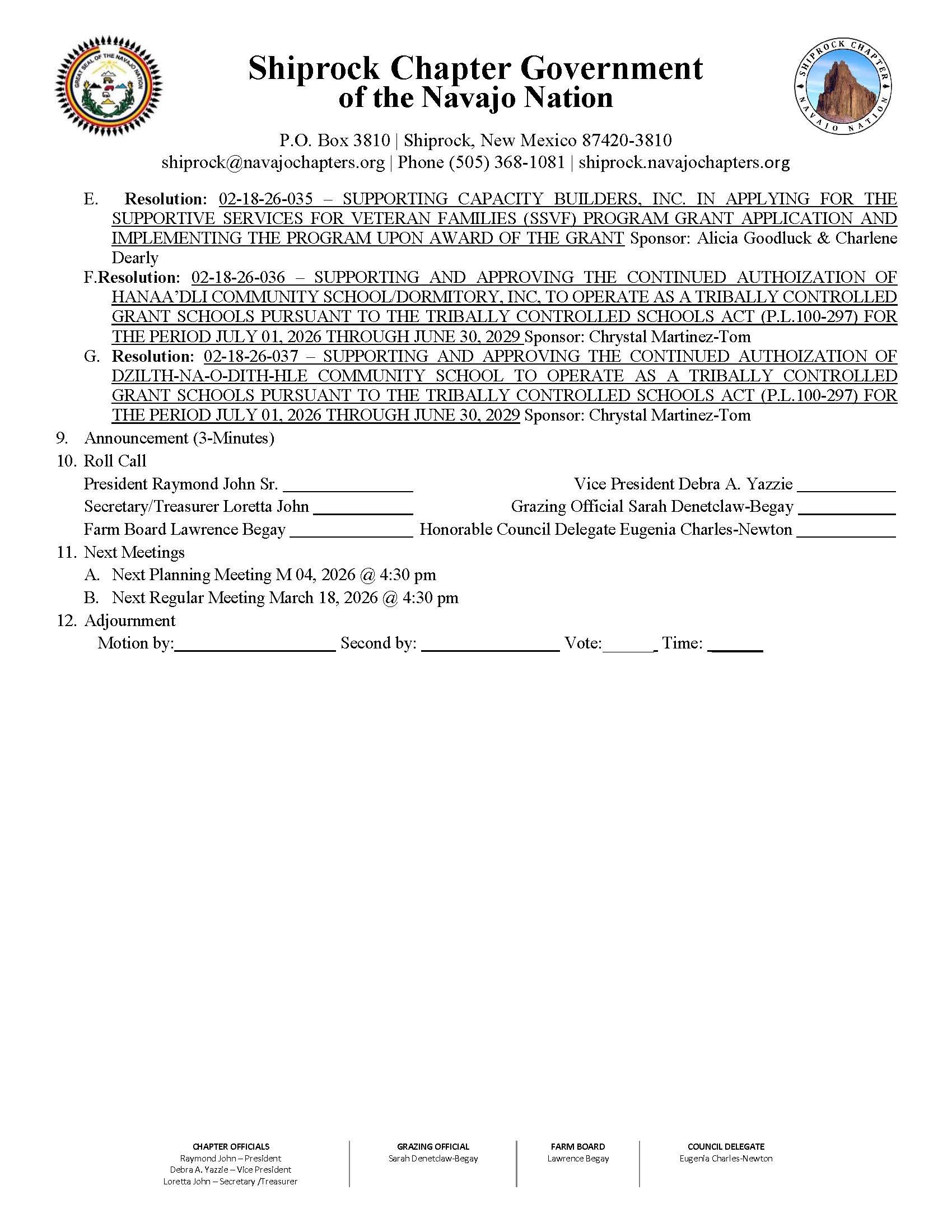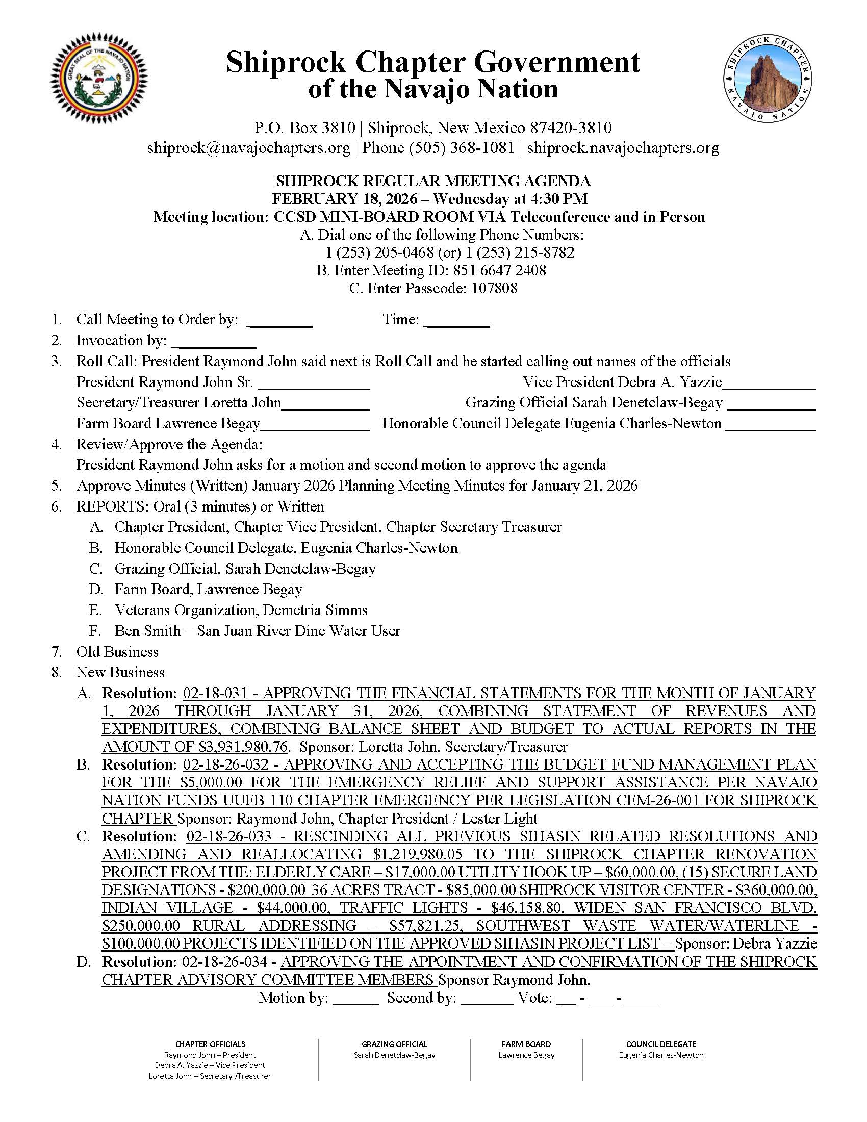 ⬅️Shiprock chapter regular meeting agenda 02/18/26
