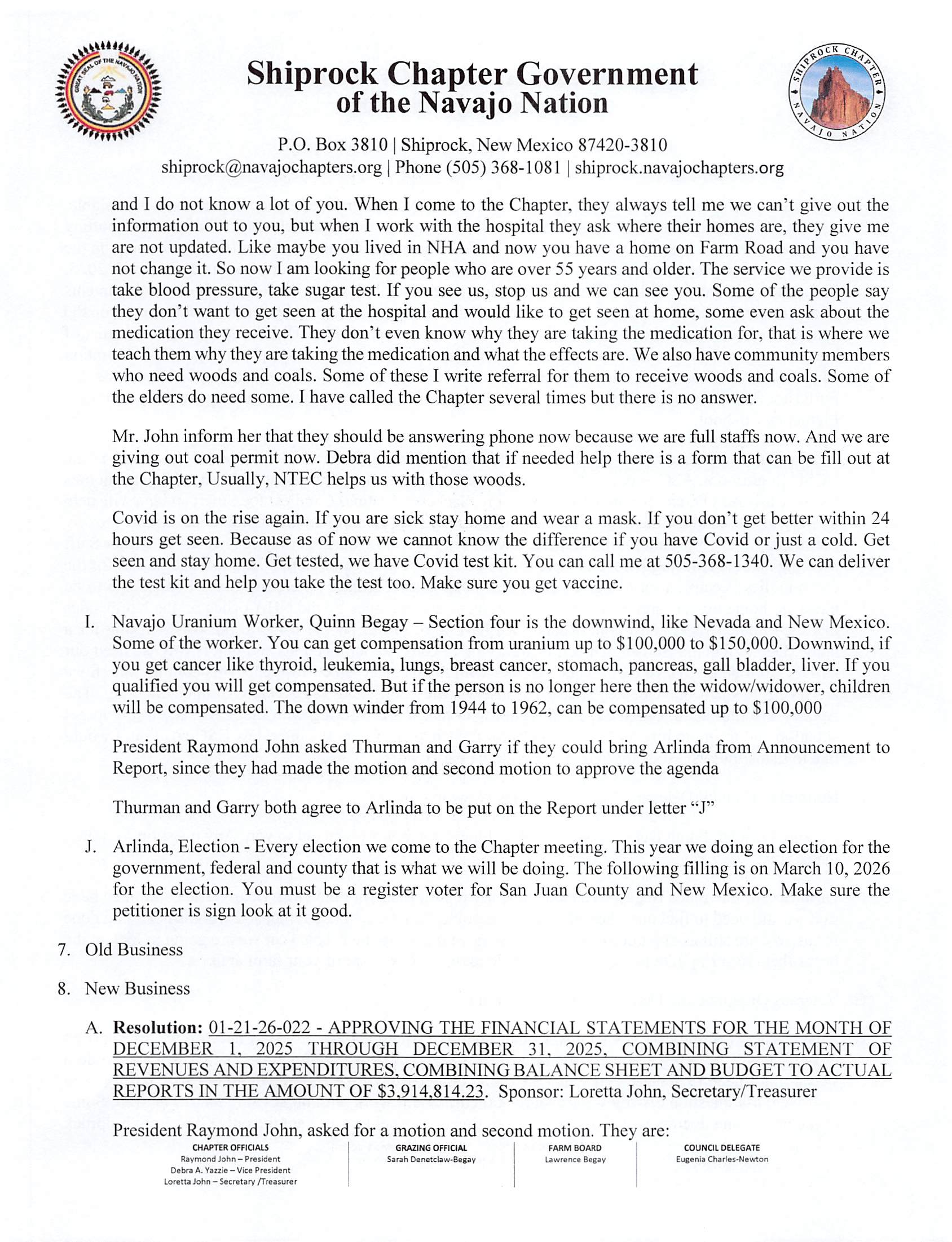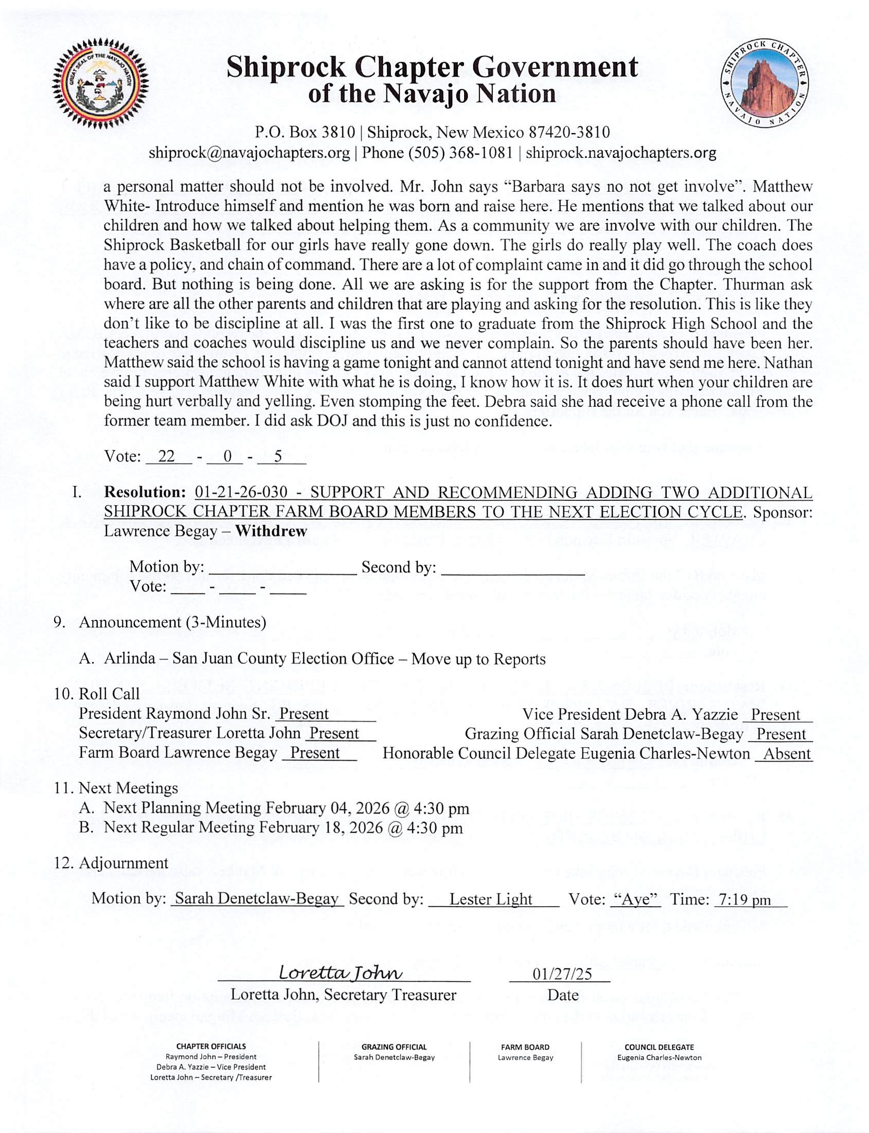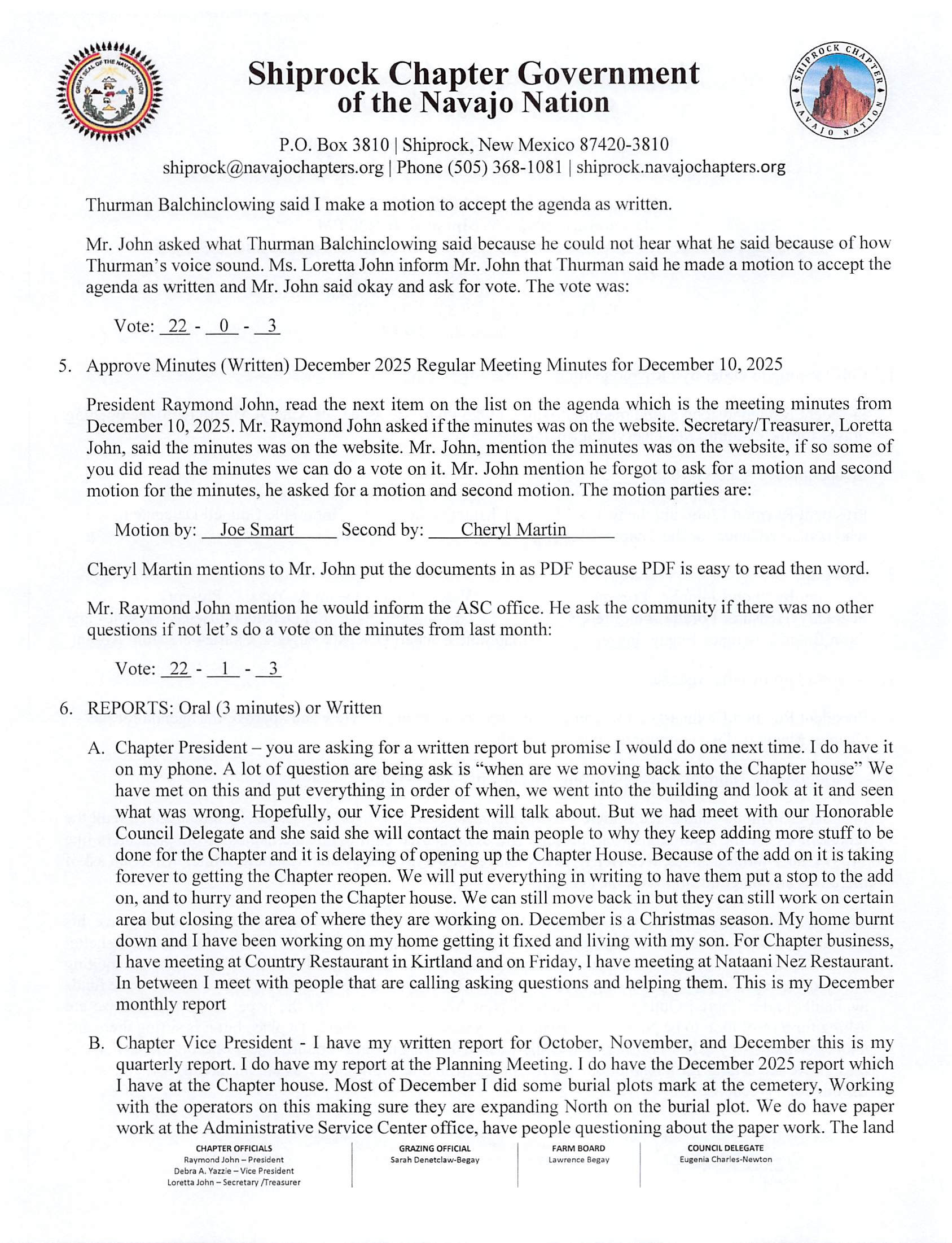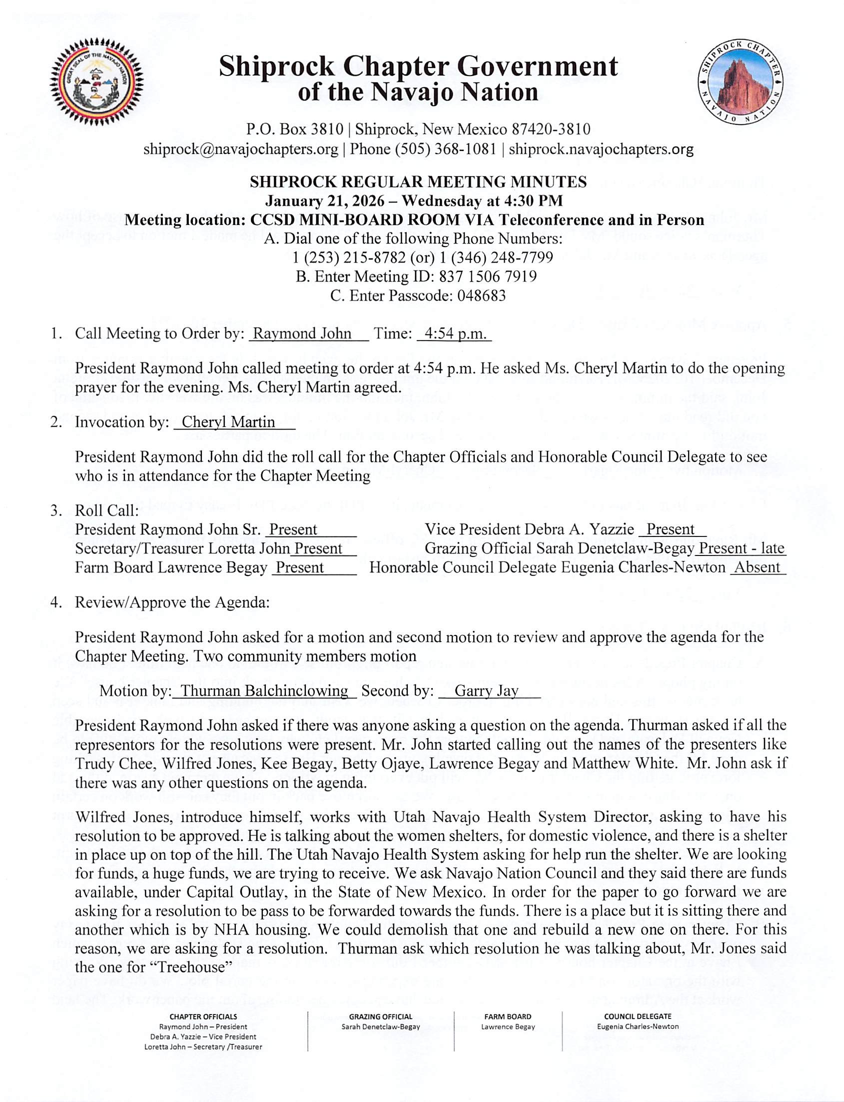 ⬅️Shiprock chapter regular meeting agenda 02/18/26