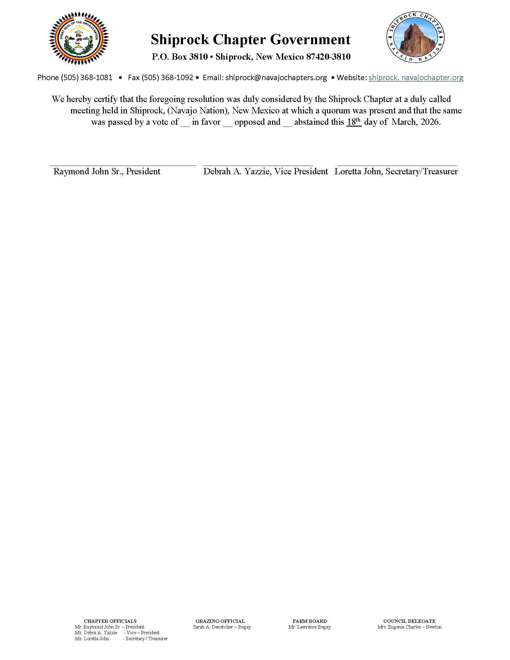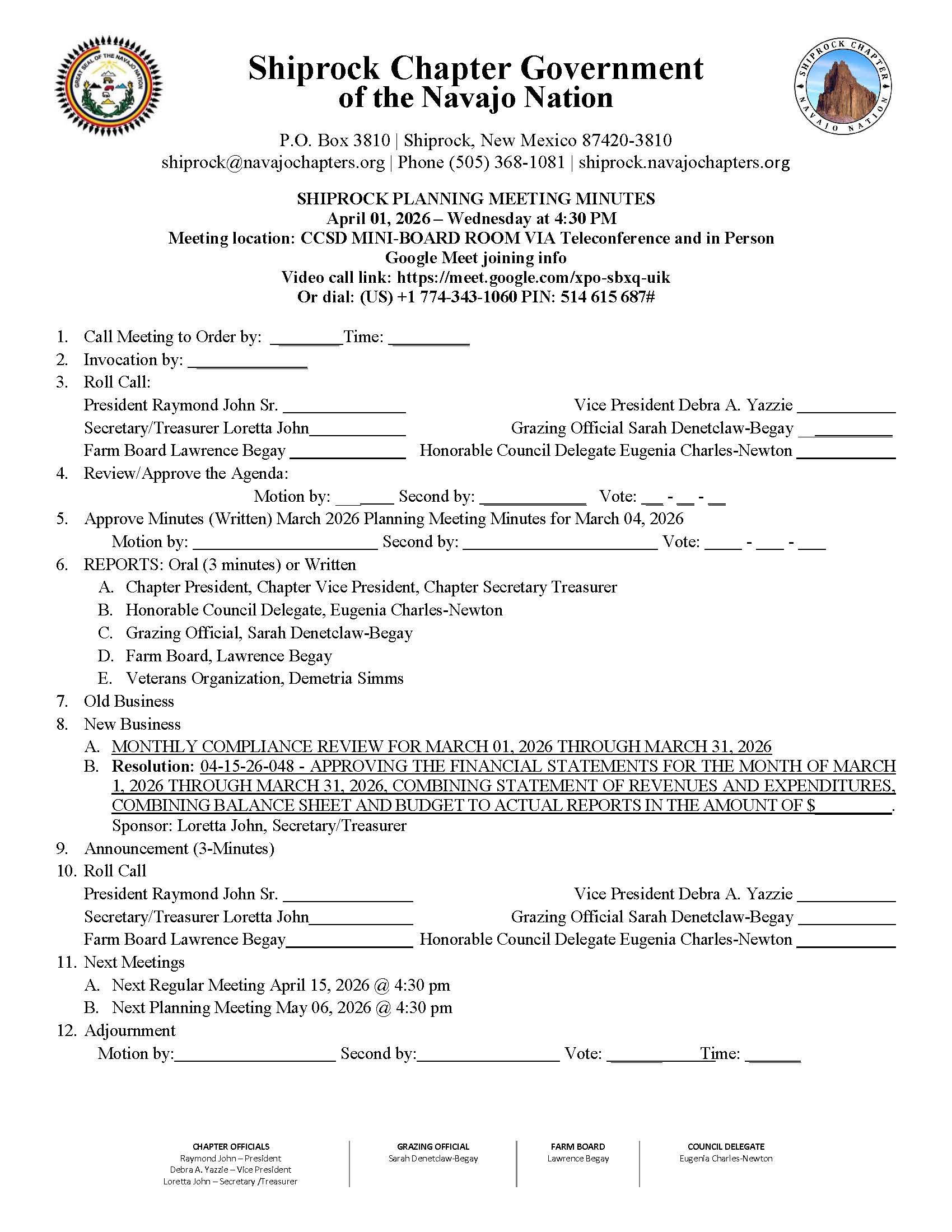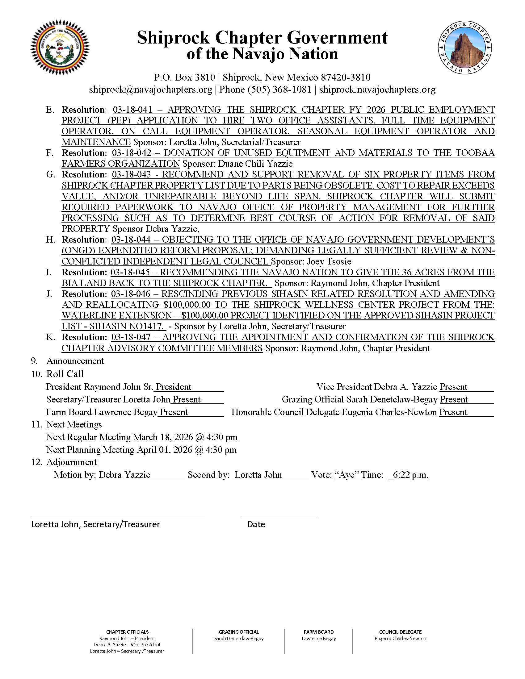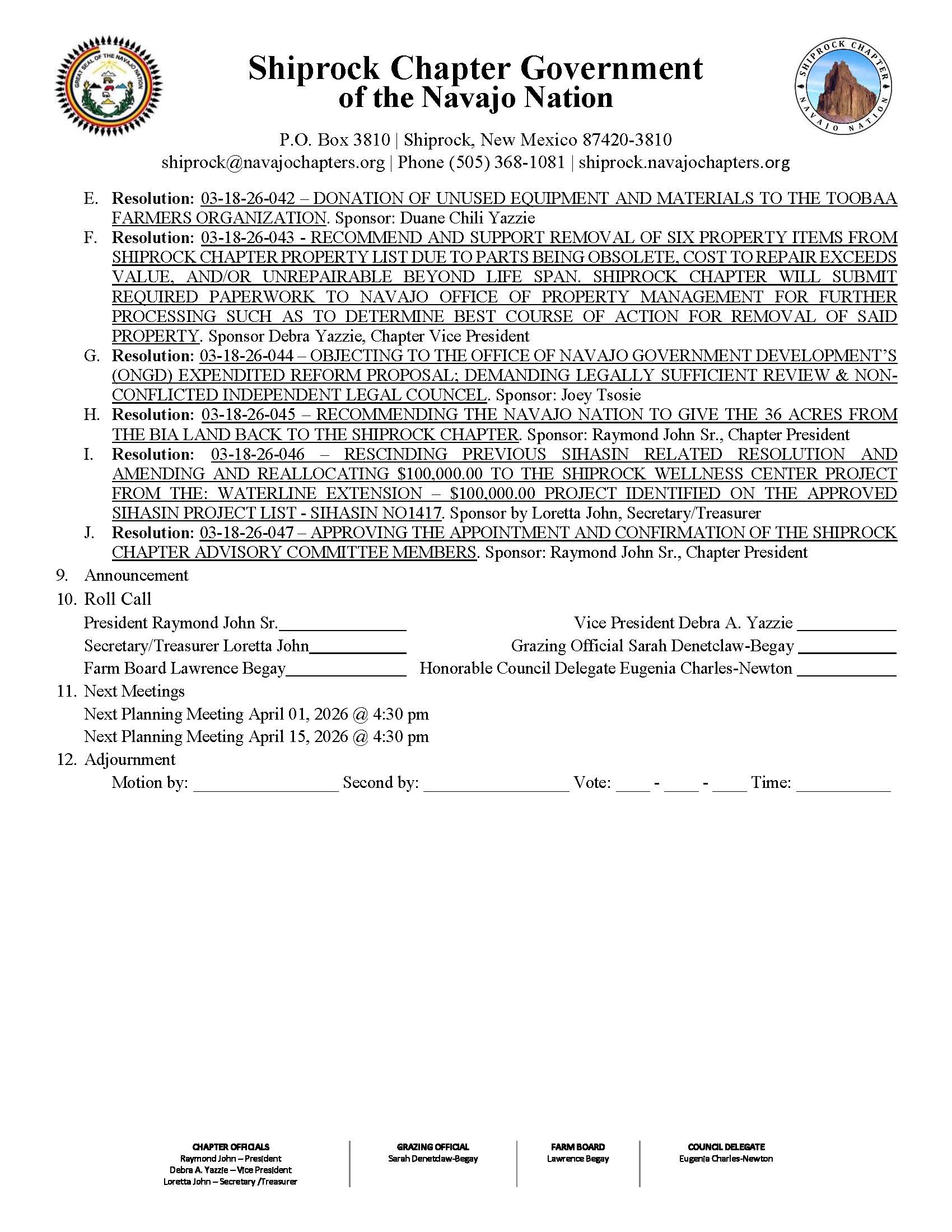 Shiprock Chapter Regular Meeting Agenda 03/18/26- Download Here⇐