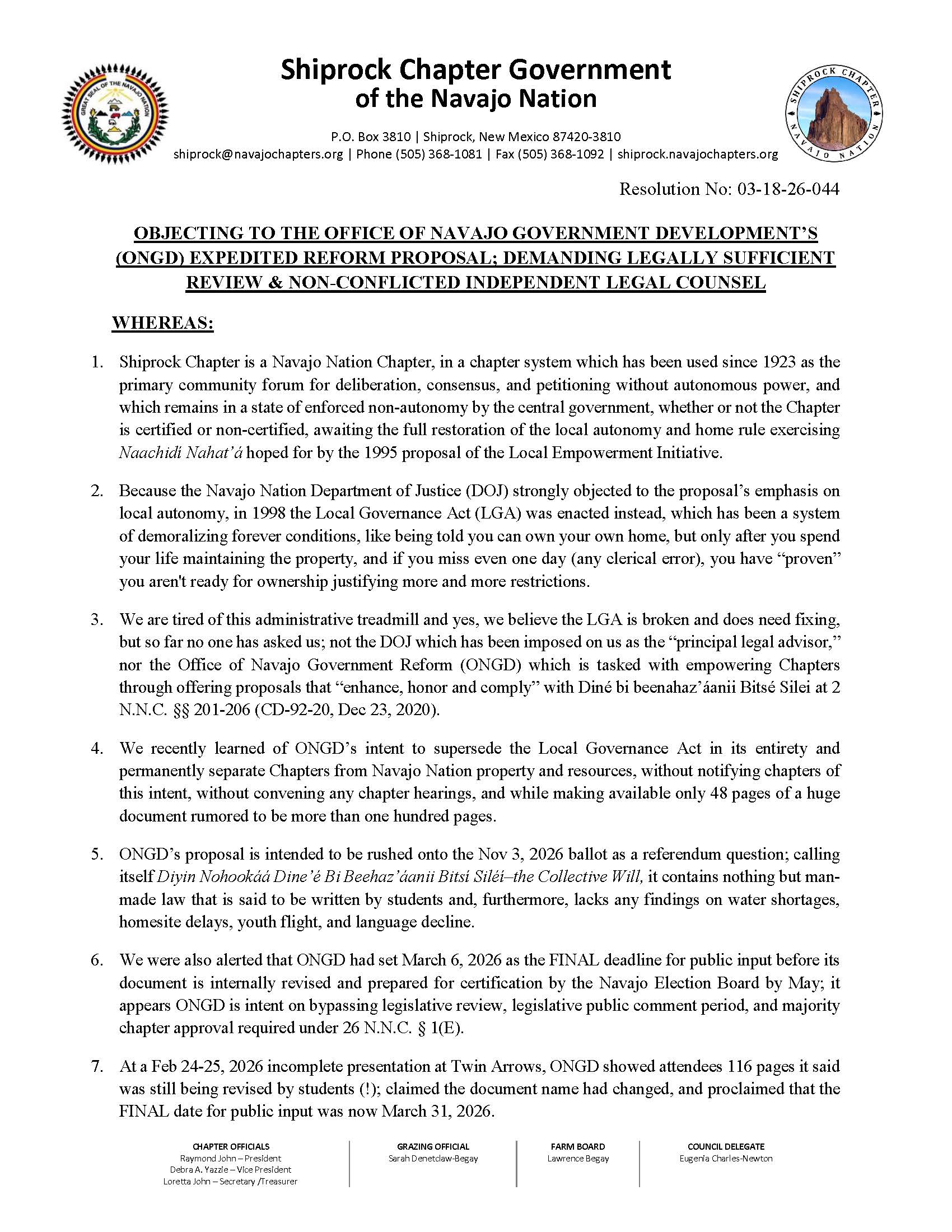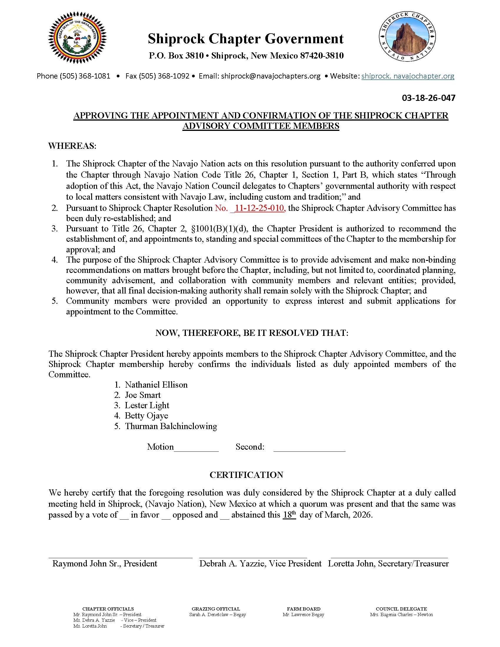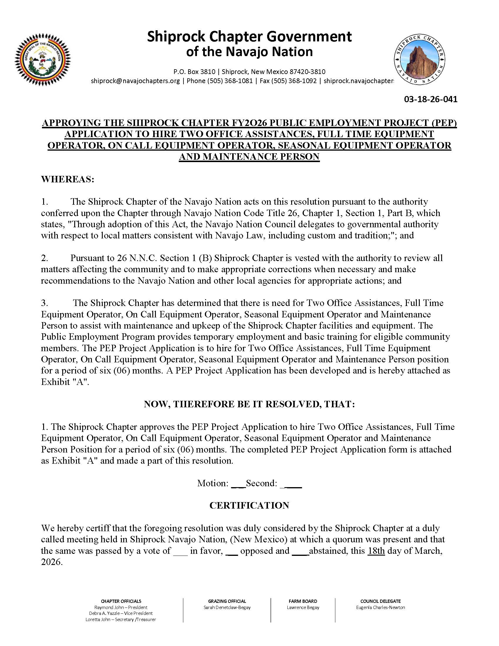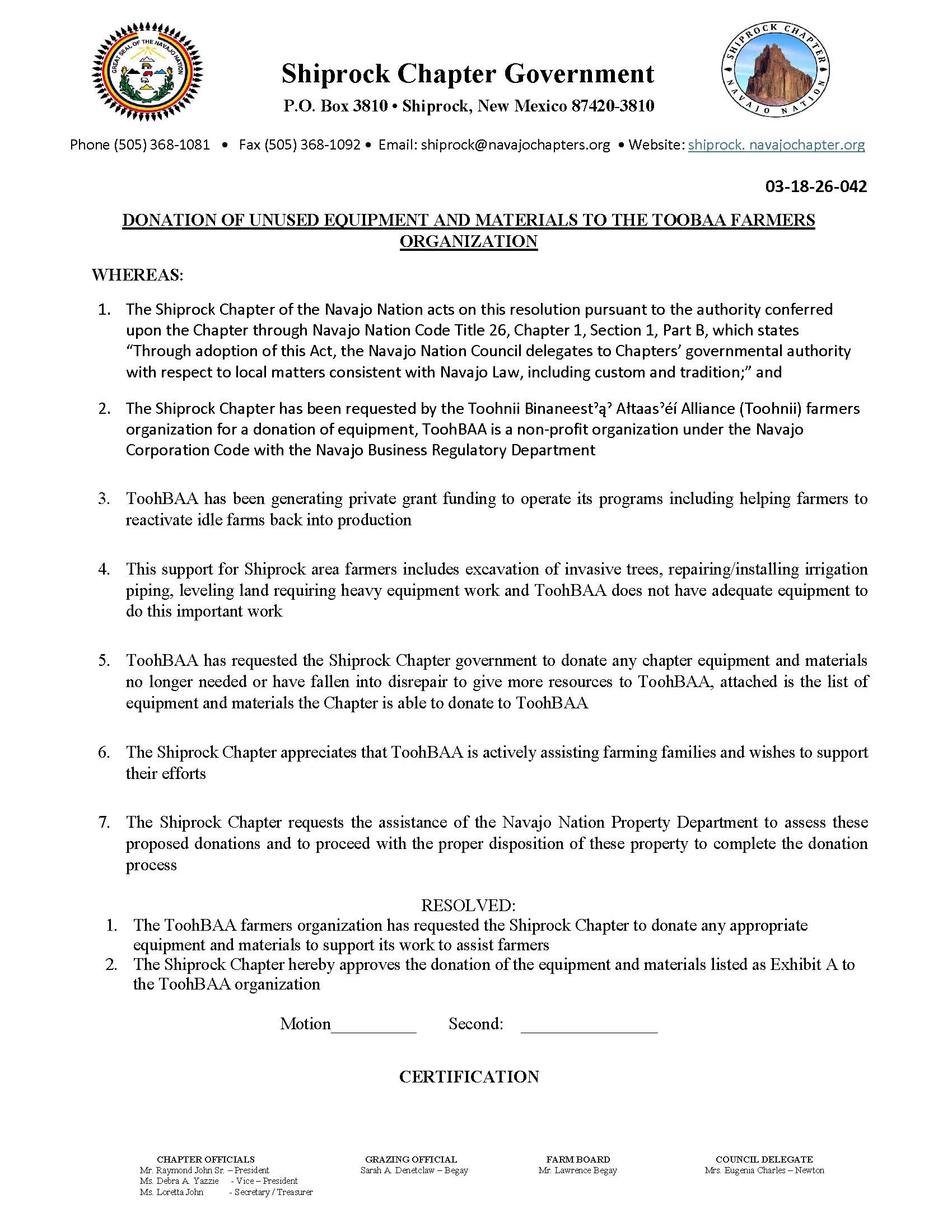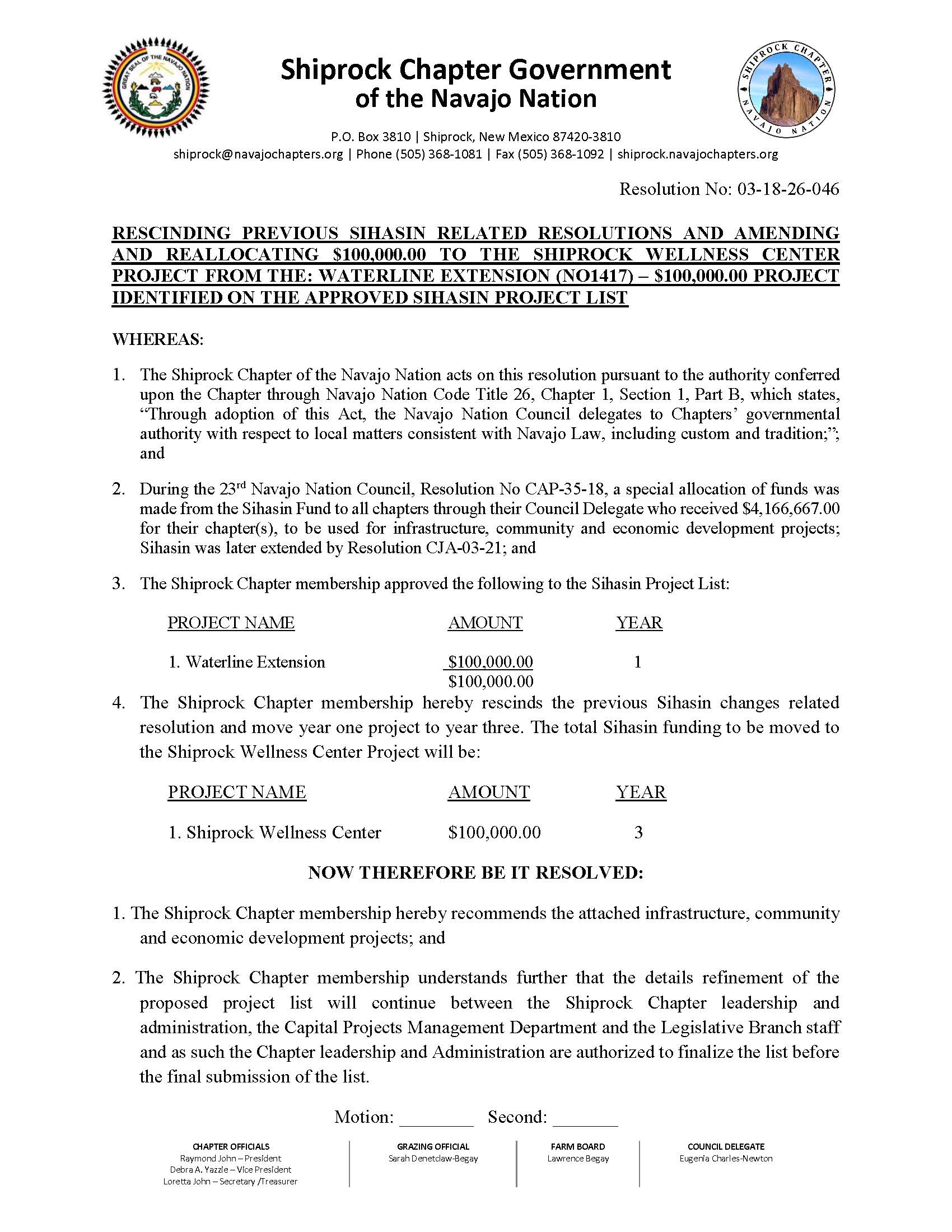 Shiprock Chapter Regular Meeting Agenda 03/18/26- Download Here⇐