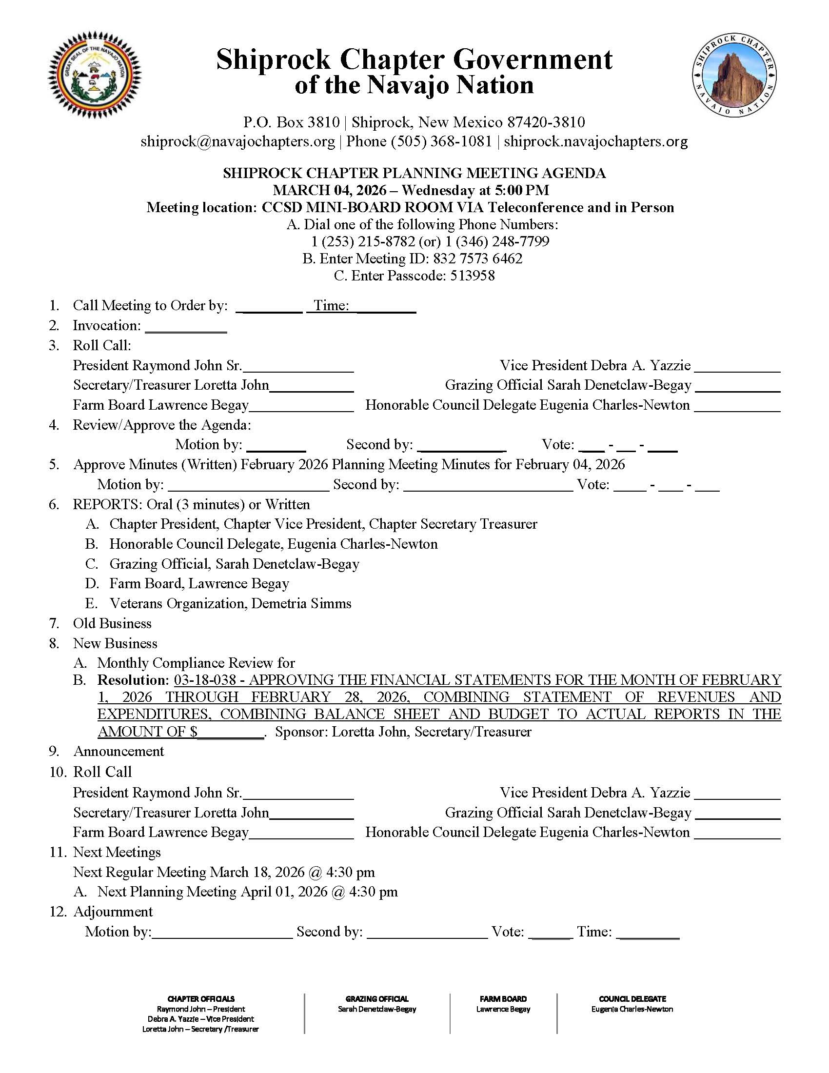 ⬅️Shiprock chapter PLANNING meeting agenda 03/04/26