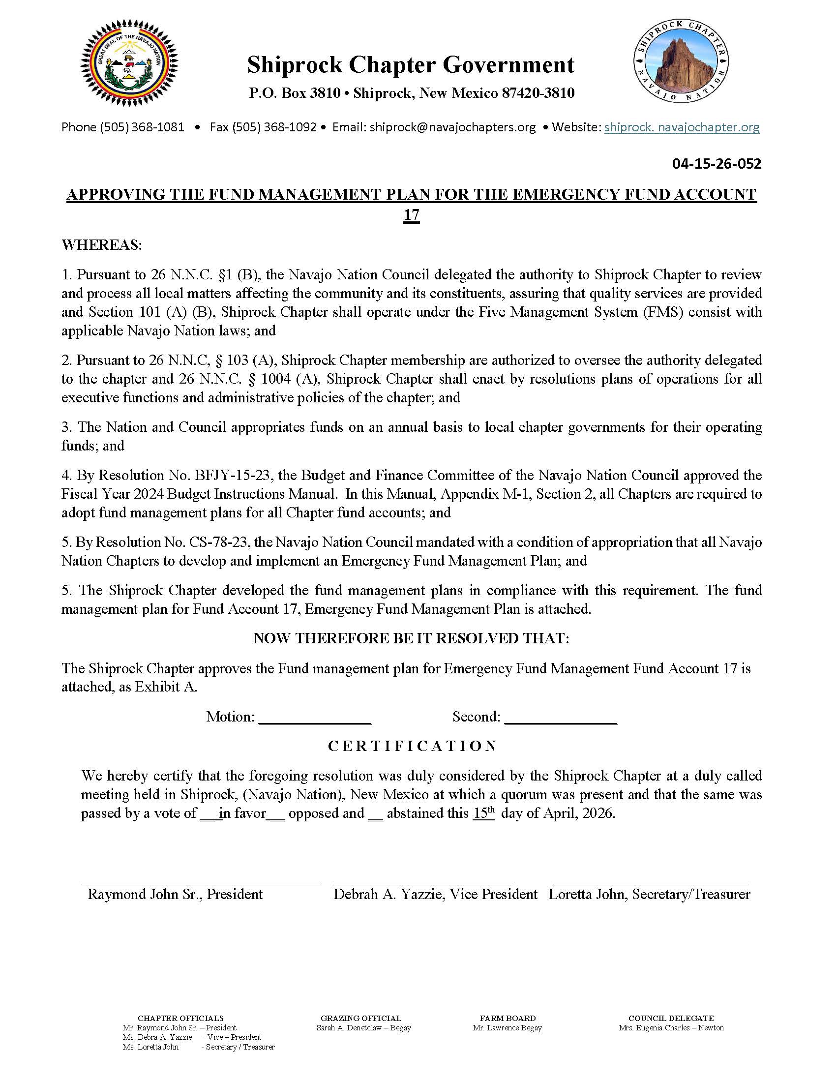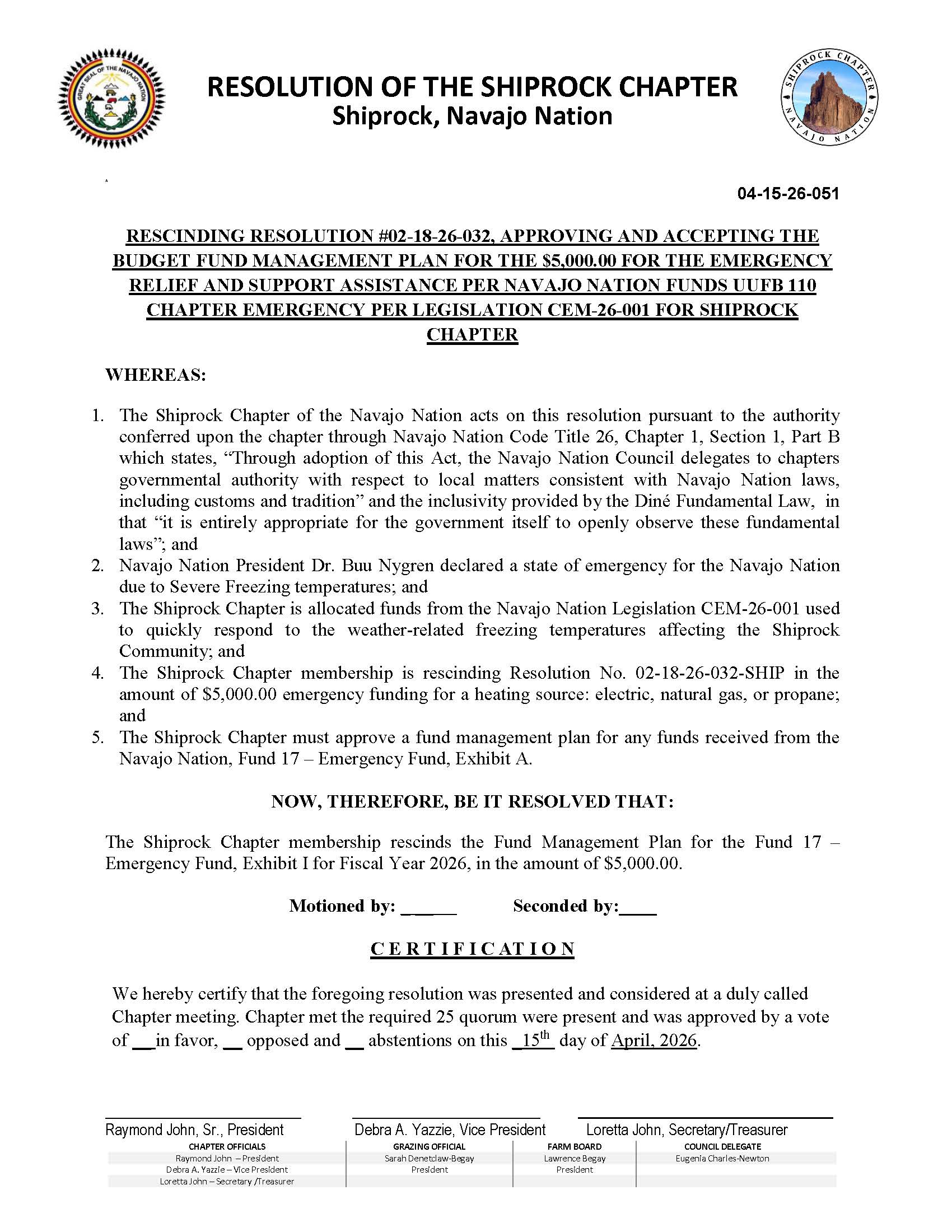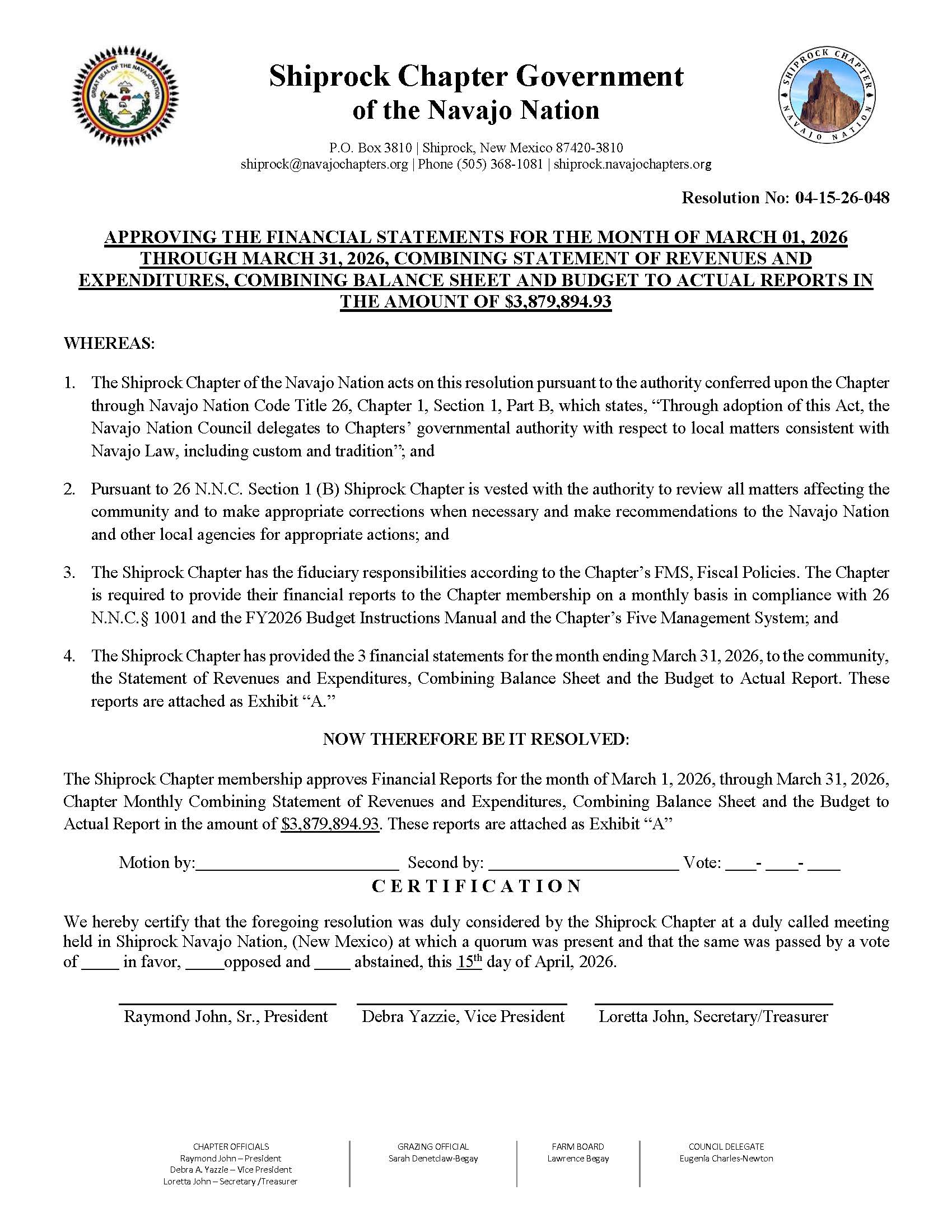 Shiprock Chapter Regular Meeting Minutes 03/18/26 – Download Here⇐