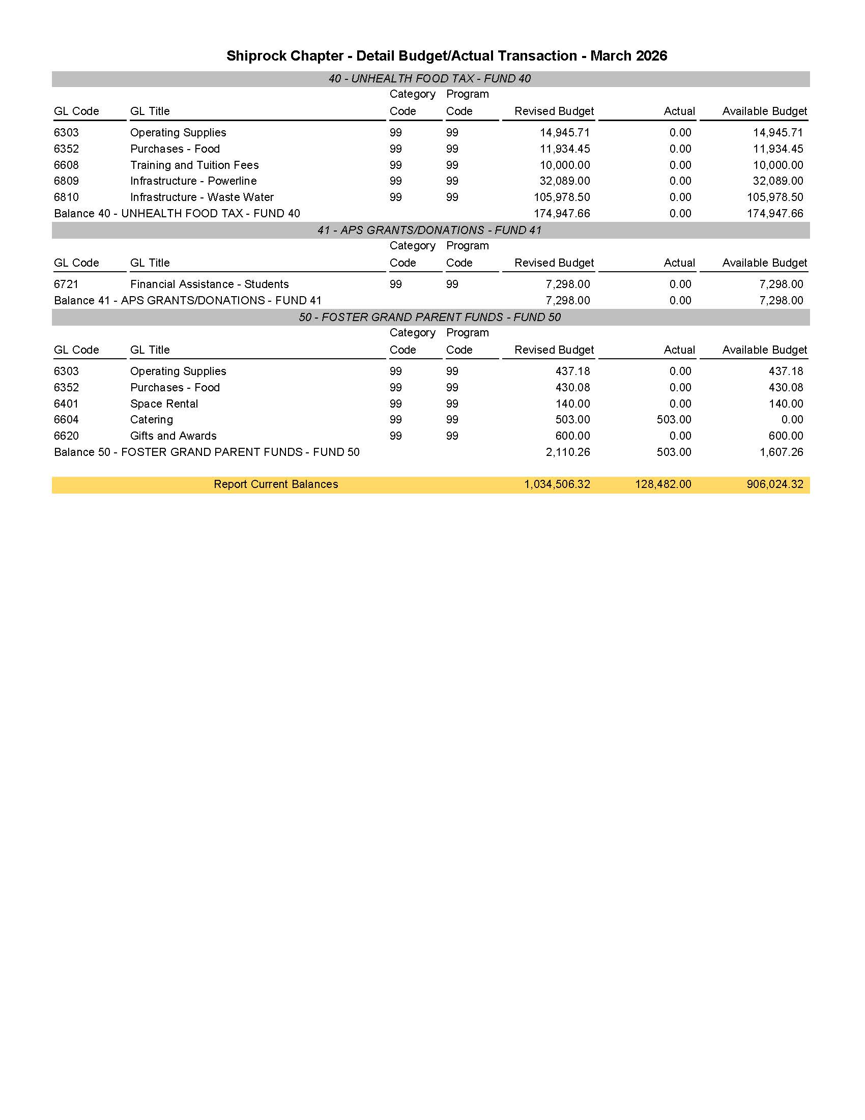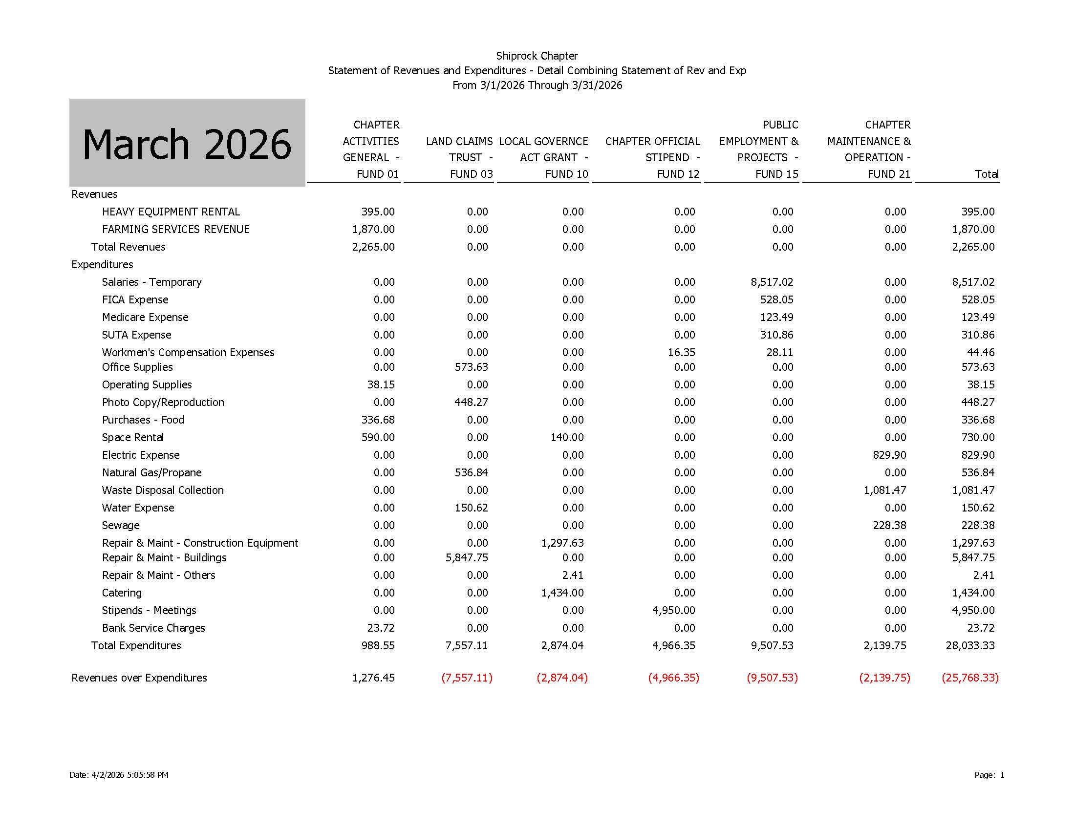 March 2026 Statement of Revenue and Expenditures Report- Download Here⇐