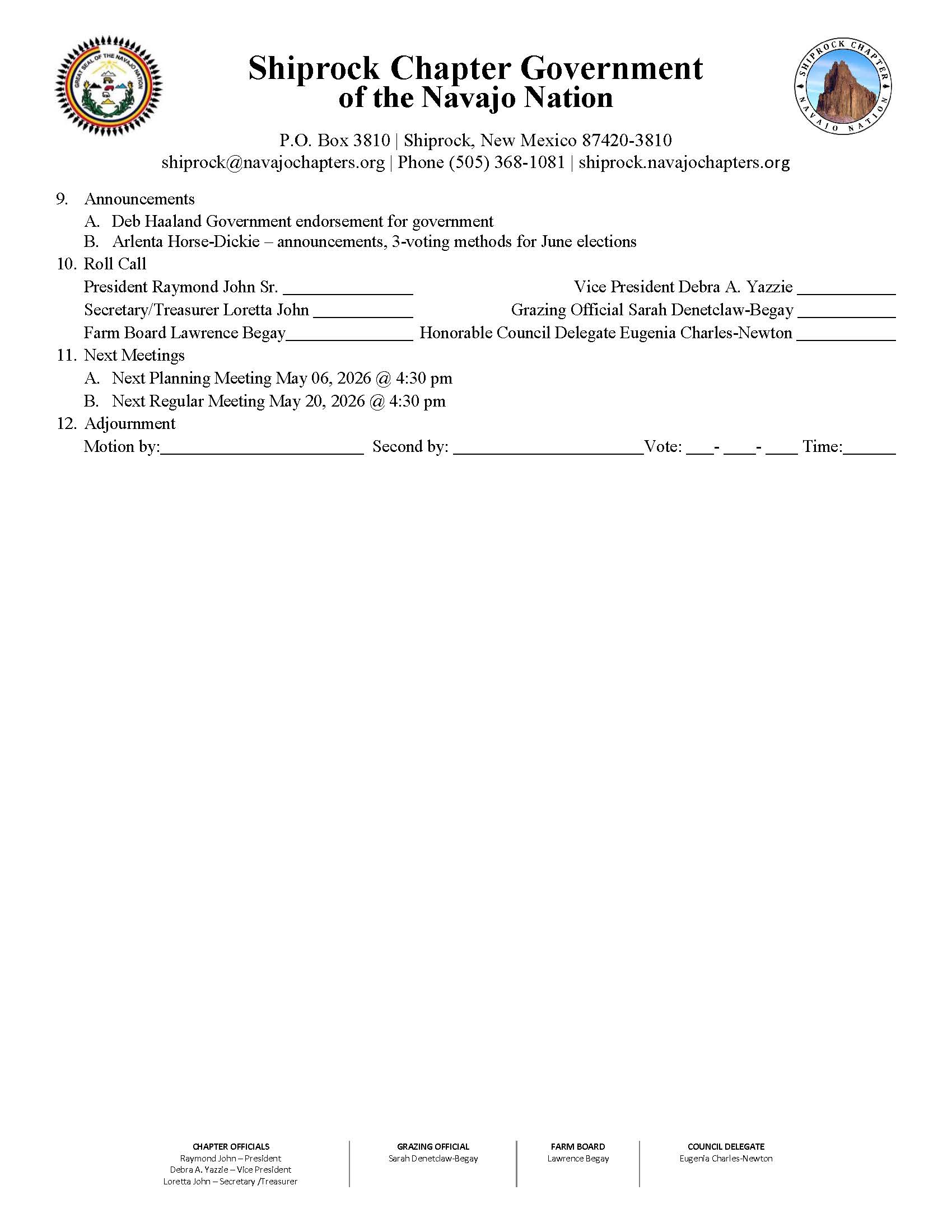 Shiprock Chapter Planning Meeting Minutes 03/04/26 – Download Here⇐